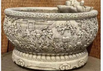 • 百子嬉戲圖?中式石雕魚缸景觀雕塑