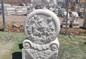 • 漢白玉象馱富貴牡丹石雕門墩景觀雕塑